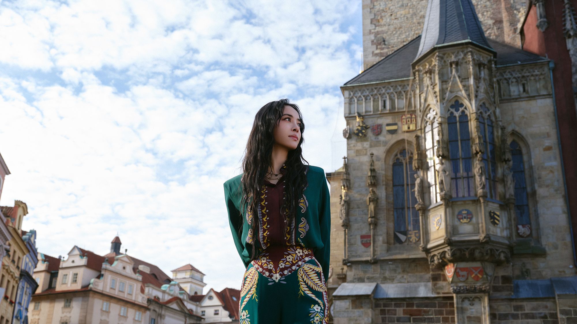 2003年,20岁出头的蔡依林唱着"我就站在布拉格黄昏的广场",MV却是在台湾片场拍的——那时候的她,还没有能力真正飞去布拉格。23年后,她化身星宇航空首航机长,真正踏上了布拉格老城广场的石板路,在天文钟下、伏尔塔瓦河畔完成了当年未竟的画面。